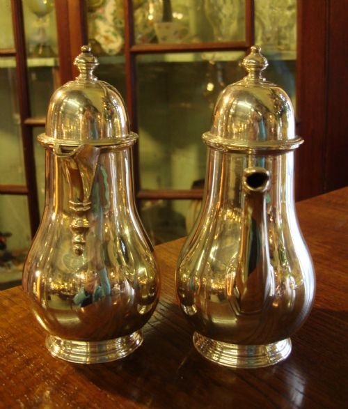 The coffee pot has a hexagonal panelled spout, while the jug has interesting cast detail below the spout.