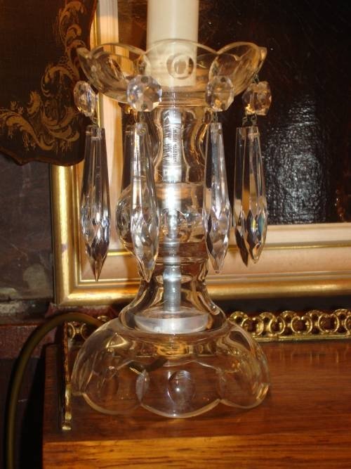 19thC pair of cut glass lustre lamps