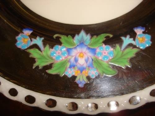 MINTONS 1912-20 most unusual platinum banded plate with striking enamel foliate design.