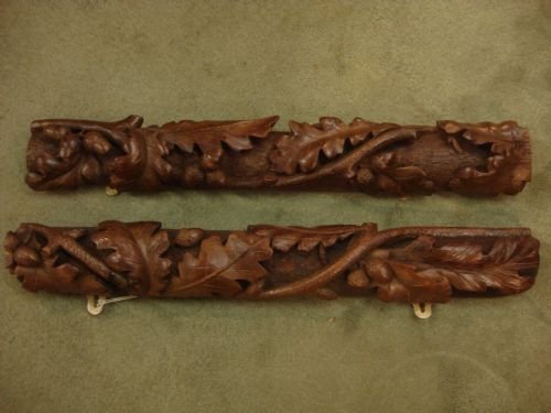 19th century beautifully carved pitch pine carving with wall hanging brackets.