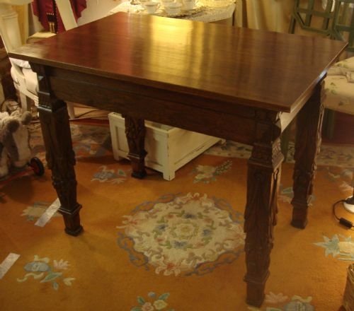 19th century very unusual Danish solid oak farmhouse table with square elaborately carved legs.