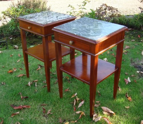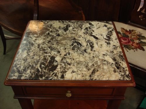 This listing is for one table. There is a pair available if desired as seen in last photo. The marble patterns are slightly different, as are the brass drawer pull sizes.